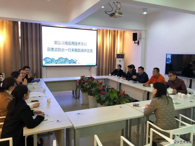 3月14日,田贵武院长、周志伟副院长、教研室主任王红兵、蒋延华、马妮、陈洁一行六人来到湖南师范大学美术学院与长沙理工大学设计艺术学院考察交流。