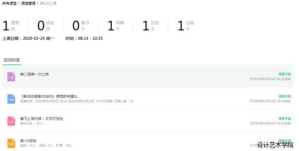王玲老师所任教的《剧本写作》课程是湖南应用技术学院设计艺术学院的数字媒体艺术设计大二学生的专业课。该专业课作为后期分镜设计、影视制作、动画制作等课程来说,属于非常重要的基础,因此我在接受该教学任务前就已经查阅过很多的资料,对于课程的大纲等做到心中有数。根据学校教务处的统筹安排,选择了中国大学慕课中的江西科技学院杨成老师的《影视动画剧本写作》课程为异步SPOC课基础核心内容,同时通过中国大学慕课直播教程学习如何做好一门在线课程的学习。通过学习,陆陆续续地对后台进行了了解和设置,也对信息化的教学手段有了初步的理解。