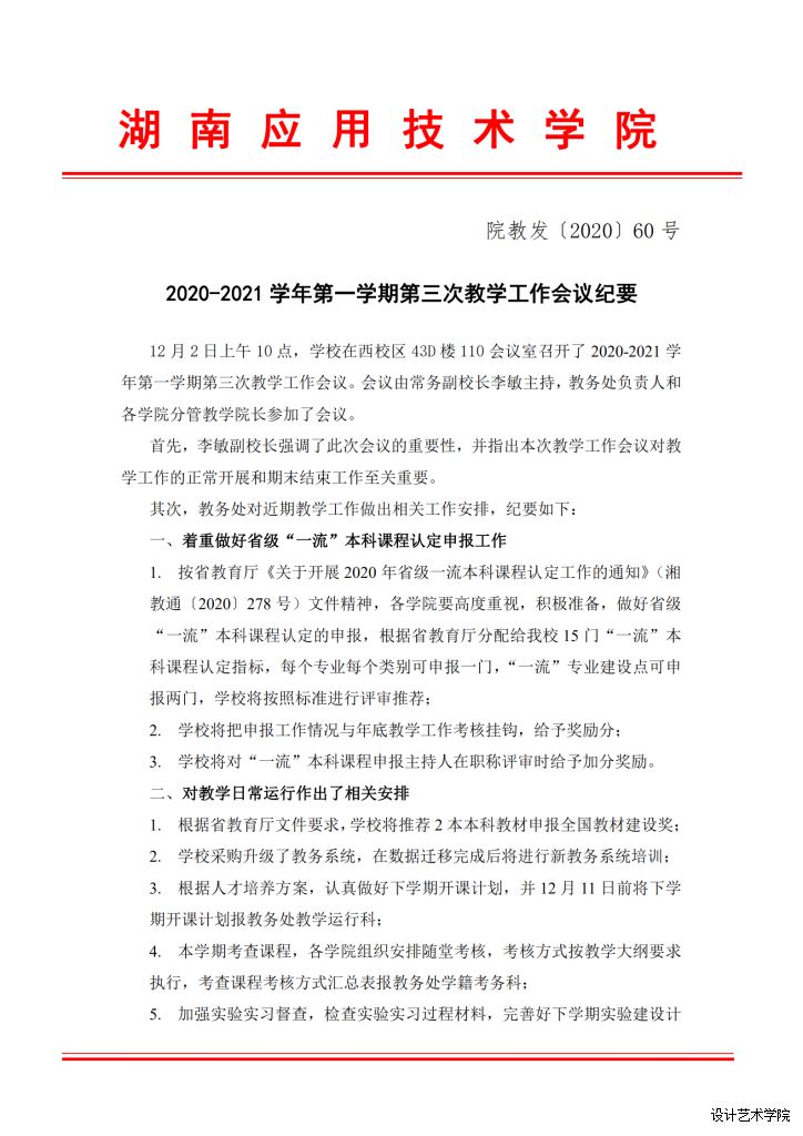 2020-2021 学年第一学期第三次教学工作会议纪要