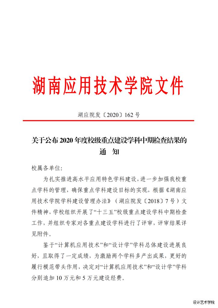 关于公布 2020 年度校级重点建设学科中期检查结果的 通 知