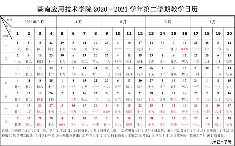 湖南应用技术学院2020-2021学年第二学期教学日历