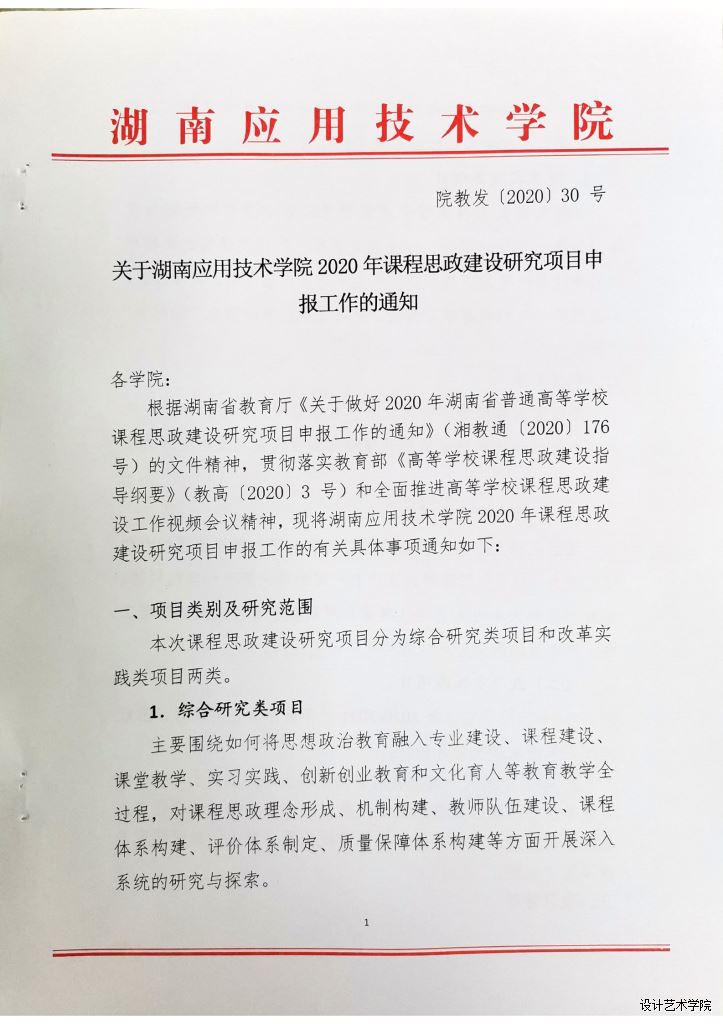 关于湖南应用技术学院2020年课程思政建设研究项目申报工作的通知
