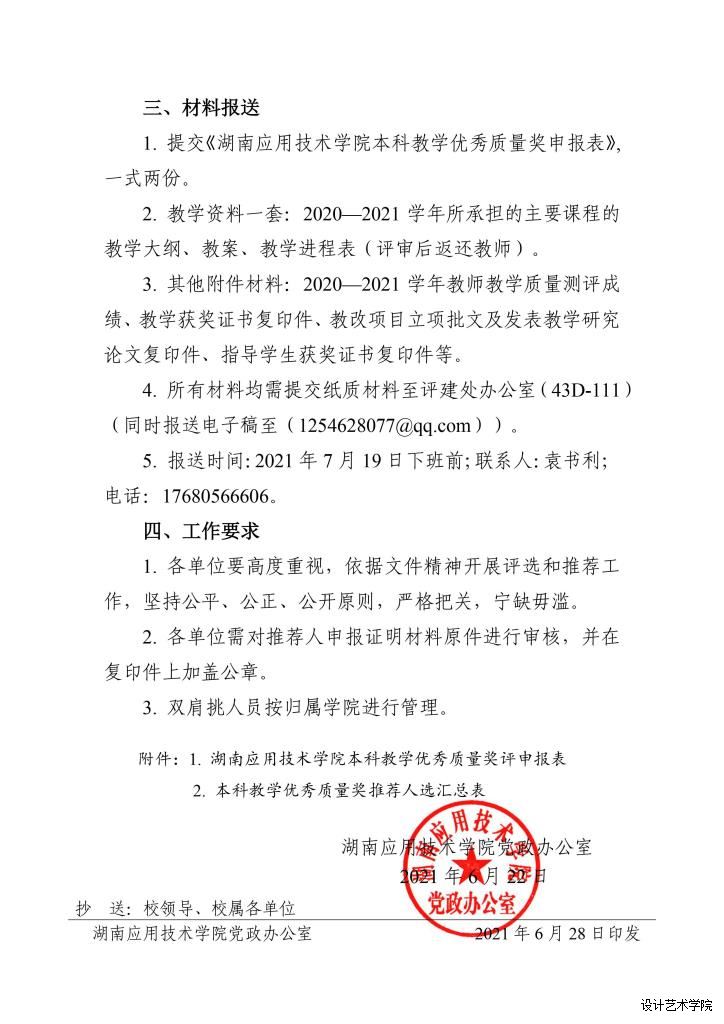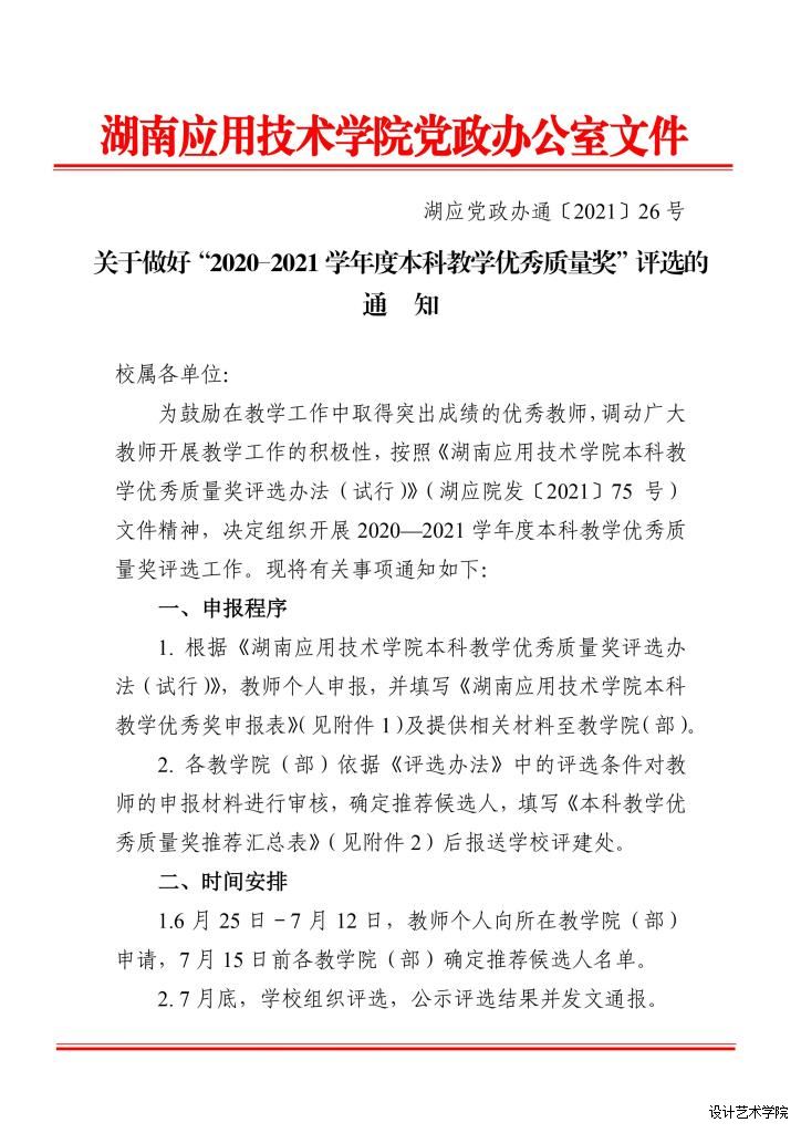 关于做好“2020-2021学年度本科教学优秀质量奖”评选的通知