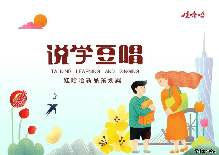 设计说明: 娃哈哈说学逗唱饮品是一款有温度的饮品,意在说出故事、学出本领、豆出天性、唱出心声。