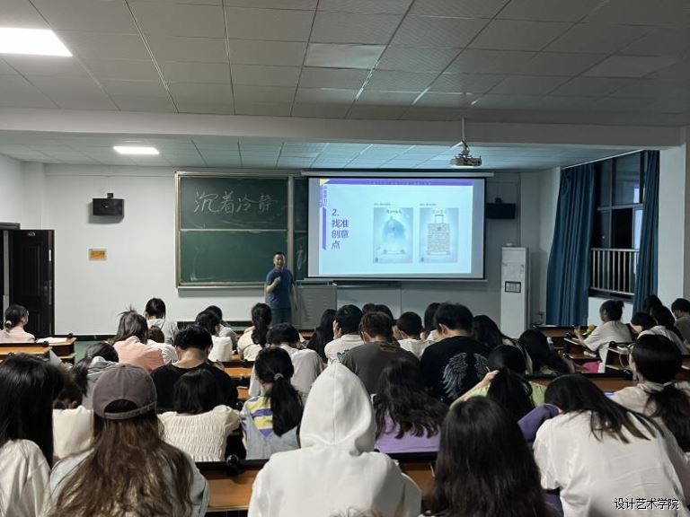 2023年4月13日晚上,设计艺术学院特邀邓水清教授在A1-308多媒体教室举行了题为《大广赛获奖作品解析之创意要出彩》的学术讲座。讲座由视觉传达教研室主办,学院师生百余人参加此次讲座。