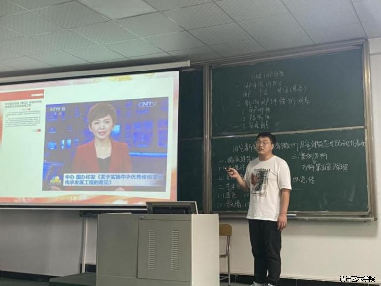 王新广老师的课题为《明清徽派住宅建筑范式的现代表现》,授课时饱含激情,声音响亮,对徽派建筑的形成原因举例分析。对传统建筑的中国文化元素贯穿在课程教学中,感染学生,感染听众,将专业知识与思想教育内容有机地融合在了课程教学之中。