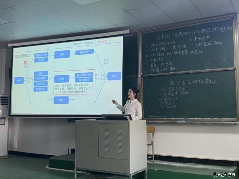 任晓兰老师就室内设计课程的《新中式风格塑造手法》的教学内容进行了课堂教学展示。任晓兰老师就文化符号的应用一一举例分析,从中国书法到传统纹样,体现了设计对传承文化起到了重要的托物言志的作用。
