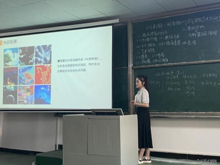 谭阳老师就数字媒体设计专业的《动画角色设计》课程的教学内容进行了课堂教学展示。谭阳老师就侗族女子的动画形象设计做案例分析,从设计要素到对中国传统民族文化中的色彩应用提炼,体现了本课程对中国传统文化中的知、行、创的完美融合,达到对学生进行思政教学的效果。