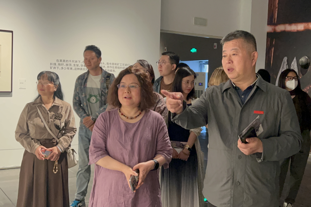 图三:何院长和秦晓教授探讨画展作品的内涵