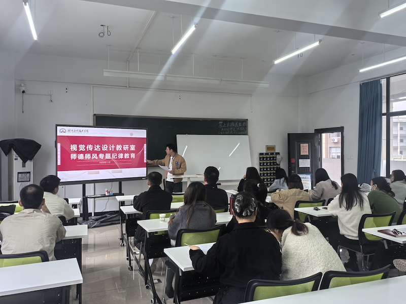 本次专题学习活动得到各教研室的积极响应与扎实推进。各教研室主任率先垂范领学导学,带领教职工系统研读《新时代高校教师职业行为十项准则》《高校教师师德失范行为处理办法》等核心文件,深入解读师德师风建设的时代内涵、核心要义和现实要求。围绕“如何将师德师风融入设计教学实践”“怎样在创作指导中践行育人使命”等关键命题展开深入交流研讨,凝聚思想共识、形成育人合力。